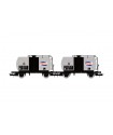 Set di 2 carri pianali a 4 assi composto da 1 carro tipo Rgs caricato con 2 container da 20 piedi e 1 carro tipo Rgmms caricato con 2 veicoli militari M113 in epoca IV-V. Modelli ultradettagliati dotati di numerosi particolari riportati in fabbrica e dotati di portaganci a norma NEM362.